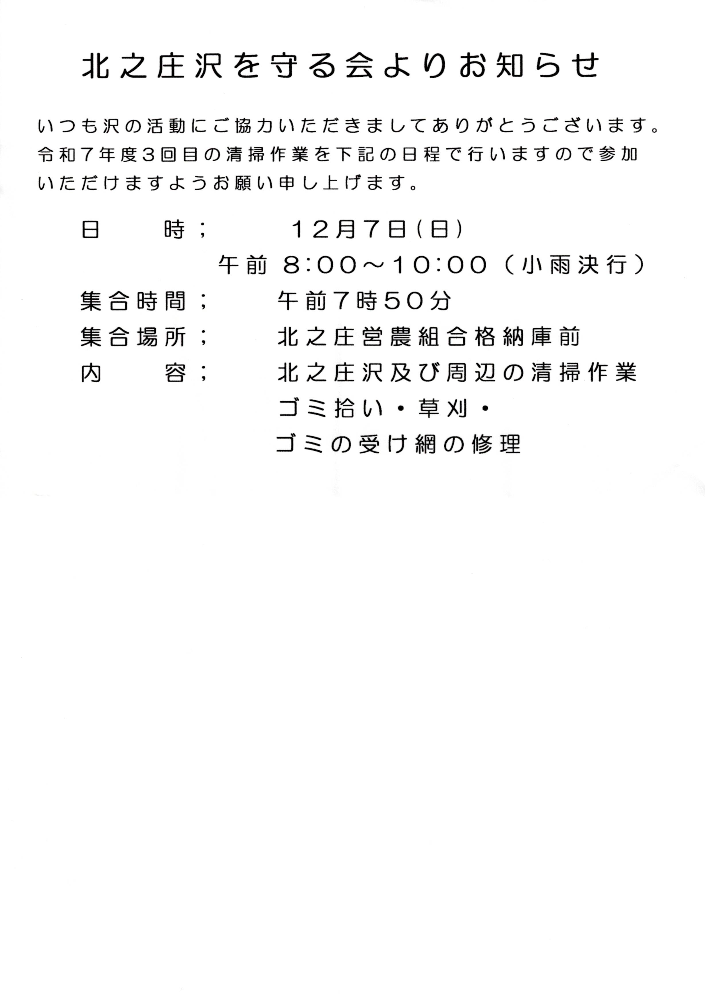 令和7年度 第3回清掃活動案内