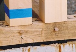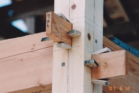 構造写真 地震の揺れを吸収してくれる 通しホゾサシ セン止め加工 丈夫な小屋組 豪雪に強い 豪雪に強い 大きな地棟 土台は栗です ヒノキの3〜5倍長持ち 柱の固定は コミセンナナメ打込 引抜強度は2tです 戻る TOP