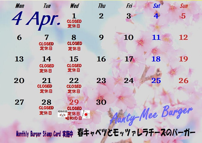 2012/2月より"Monthly Burger Stamp Card"を始めてます
