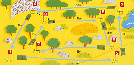 標準コースは、外回りコース4、内回りコース4、合計8ホールポストを原則とする